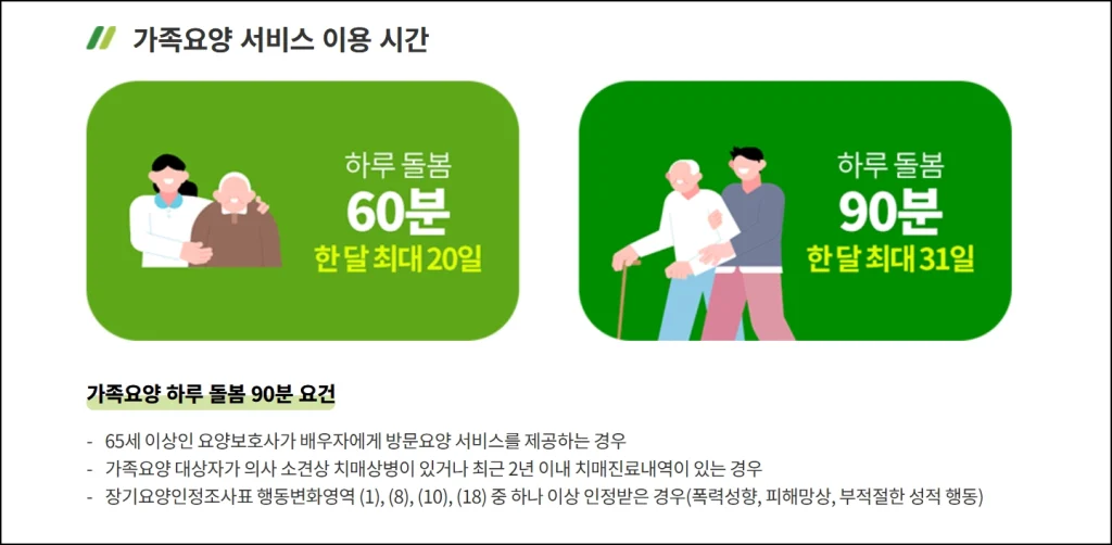 90분 가족요양 초과 지급 가능 조건