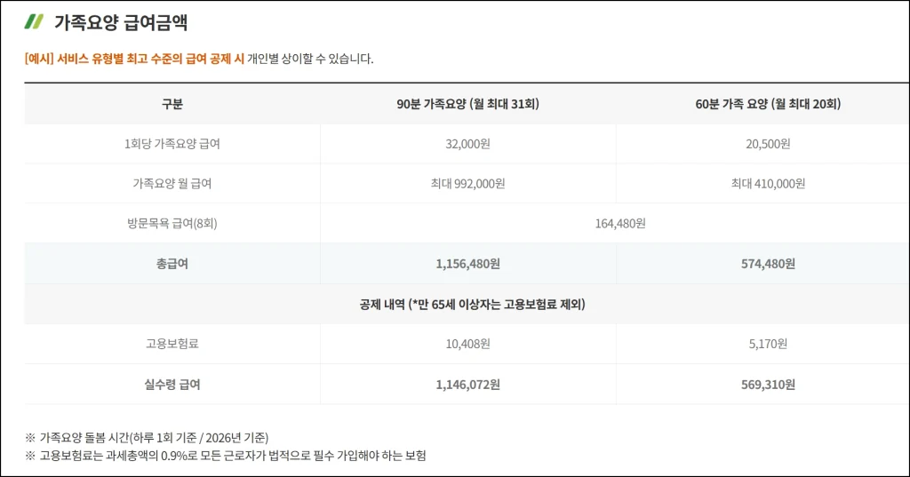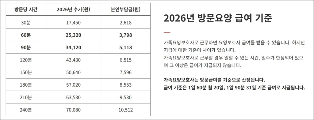 가족요양보호사 급여 (2026년 기준)