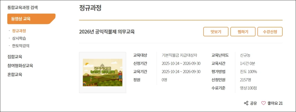 4)‘2026년 공익직불제 의무교육’ 강의 선택