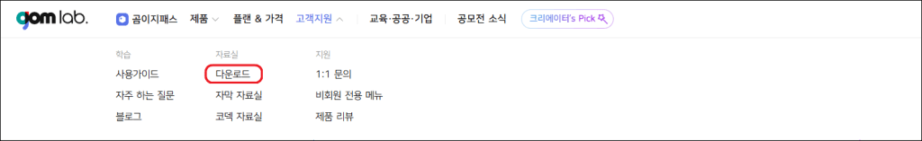 - 공식 웹사이트 접속 : 포털 검색창에 “곰플레이어” 또는 “곰랩”을 검색하여 공식 웹사이트(GOM Lab)에 접속합니다.