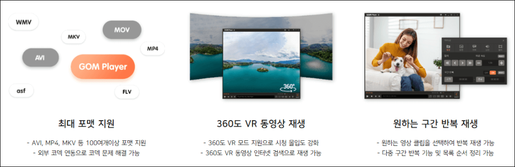 - 다양한 포맷 지원: AVI, MP4, MKV, FLV, MOV 등 거의 모든 영상 및 음성 파일 재생 가능