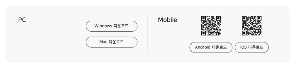 - 플랫폼 선택 : 사용자의 운영체제에 맞춰 PC(Windows, Mac) 또는 모바일(Android, iOS) 버전을 선택합니다.