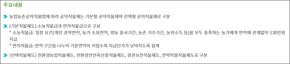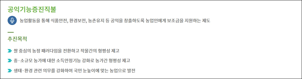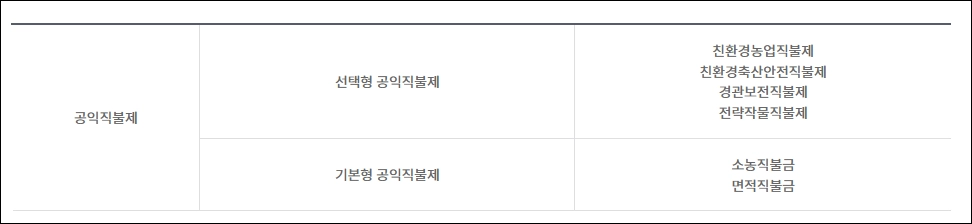 | 근거 법령 | 농업·농촌 공익기능 증진 직접지불제도 운영에 관한 법률 |