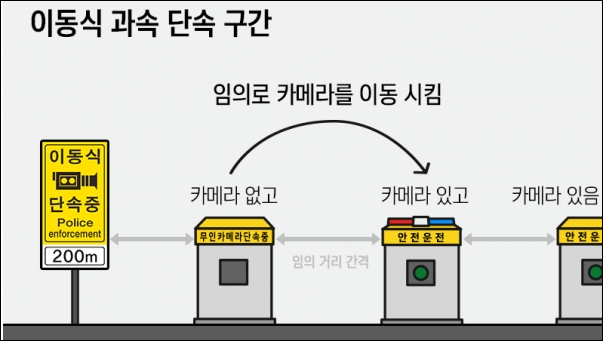 고정형 카메라와 달리 이동식 단속장비는 경찰이 특정 구간에 일시적으로 설치하여 운영합니다.