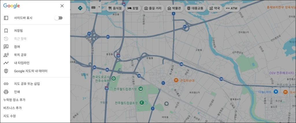 PC에서 구글지도 한글판 설정 방법