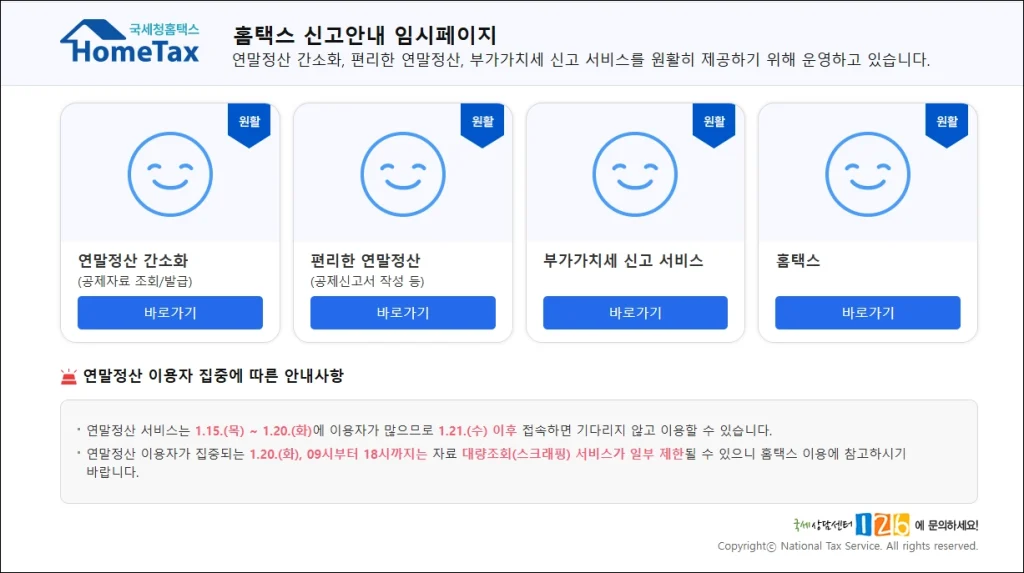 - 국세청 고객센터 연계 지원 가능