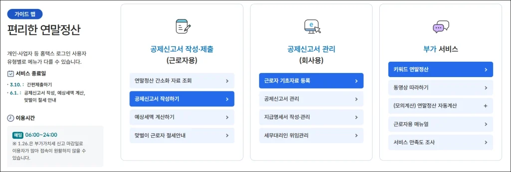 - 환급·조회: 환급금 실시간 확인, 연말정산 간소화(2026년 1월 15일 개통)