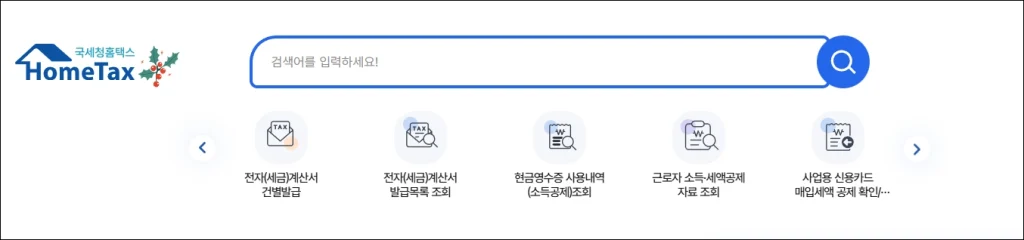 - 국세청 홈택스 공식 홈페이지 접속