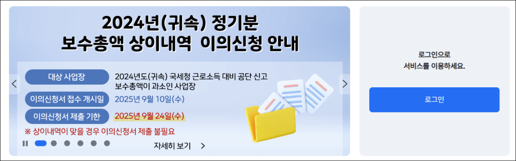 보험료 신고 및 납부는 분기별, 연도별 마감일(3월 31일 등)에 맞춰 처리해야 연체이자가 발생하지 않습니다. - 해외 접속 제한