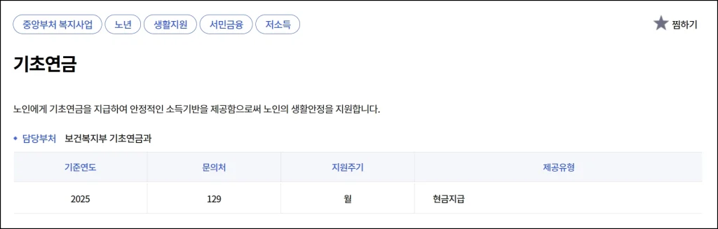 | 상담 전화 | 보건복지부 콜센터 129, 국민연금 1355 |