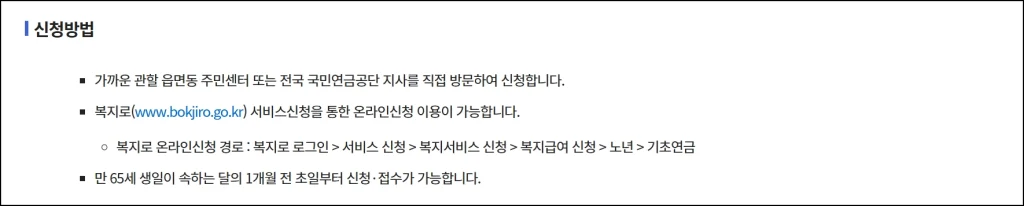 | 신청처 | 읍·면·동 행정복지센터, 국민연금공단 지사, 복지로(bokjiro.go.kr) |