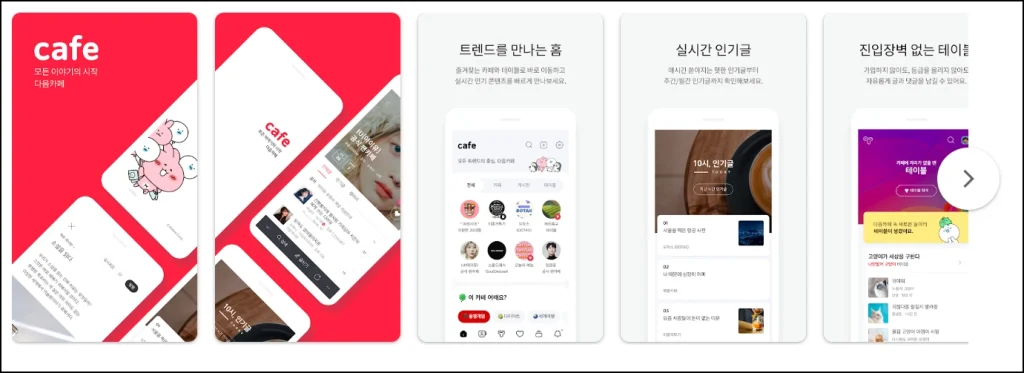 - 안드로이드: 구글 플레이스토어 → ‘다음 카페’ 검색 → 설치