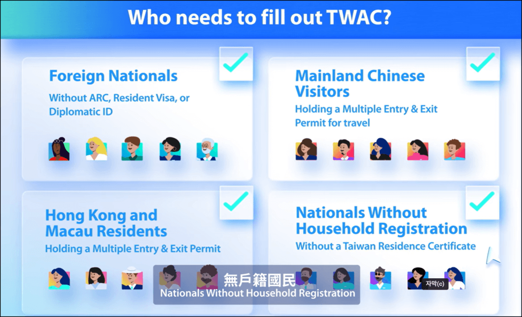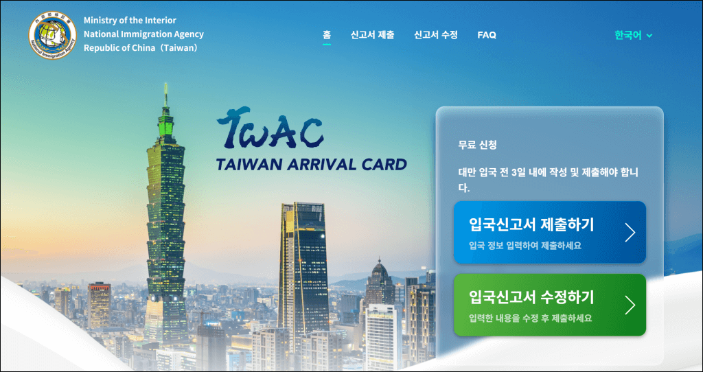 - 공식 온라인 입국신고서는 반드시 대만 이민국(TWAC) 공식 사이트에서만 접수됩니다.