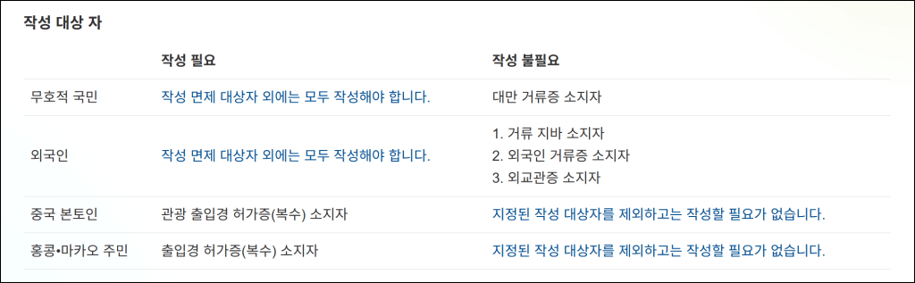 - 대만 입국 3일 전부터 온라인으로 작성 가능