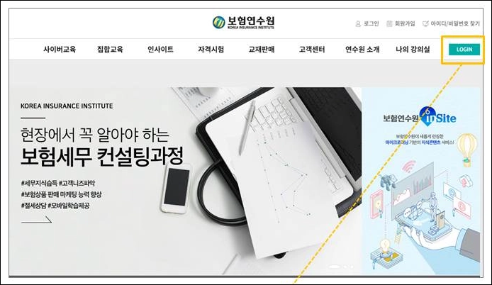 보험연수원 공식 홈페이지 접속 후 ‘교육과정 → 법정교육 → 보수교육’ 메뉴에서 해당 직무에 맞는 교육과정을 선택. - 교육 수강
