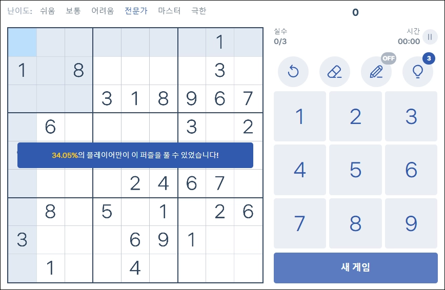 대부분의 퍼즐·교육 사이트는 Easy 난이도부터 시작해 규칙과 패턴에 익숙해진 뒤,
