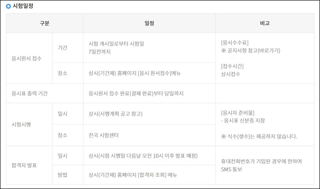 시험 방식CBT(컴퓨터 기반 시험), 연중 상시
