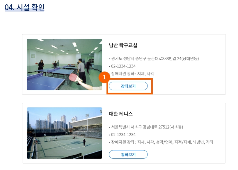 | 공공체육시설 | 시·군·구체육센터, 장애인체육회 |