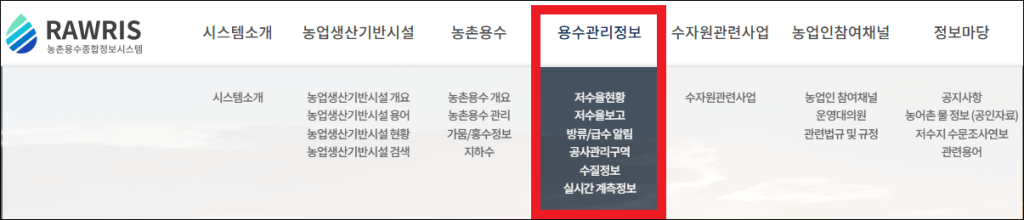 - 농촌용수종합정보시스템(rawris.ekr.or.kr) 접속