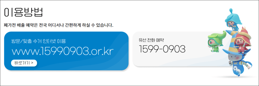 폐가전 방문수거 배출예약시스템 접속15990903.or.kr 홈페이지 접속