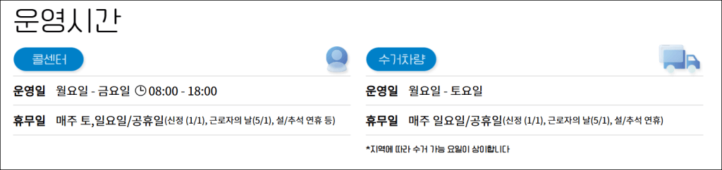 또한, 수거일 전날과 당일에는 문자 알림을 통해 방문 시간을 안내받을 수 있으므로 반드시 확인하시기 바랍니다.