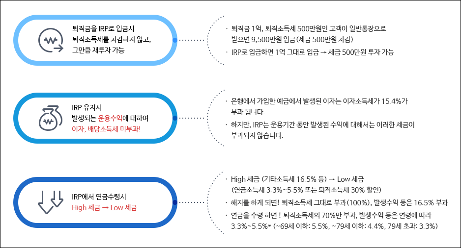 - 퇴직금이 원천징수 없이 바로 IRP 계좌로 입금