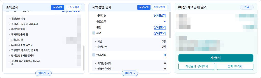 · 카드 종류별(신용카드·체크카드·현금영수증) 사용 비율 변경 시 예상 환급액 변화 확인 가능.