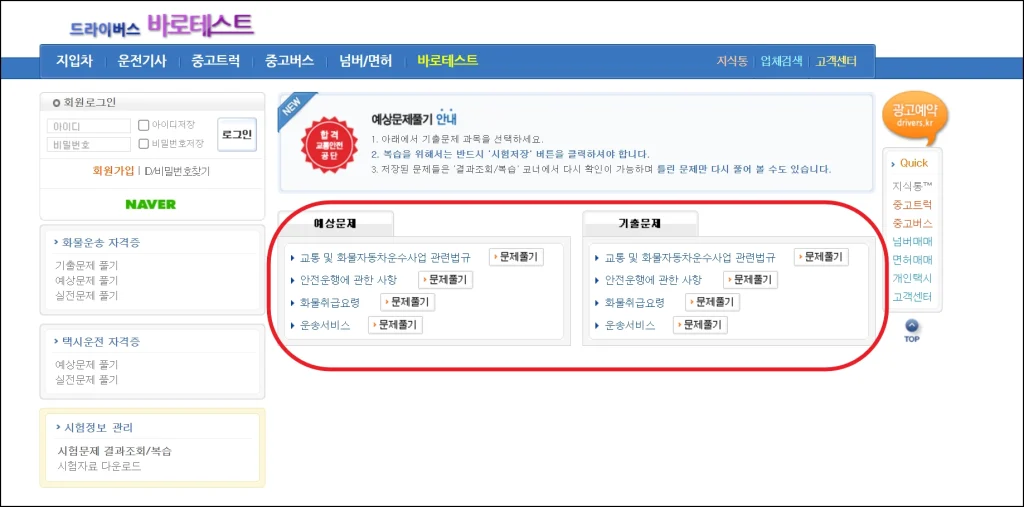 화물운송 자격시험 기출문제 제공 사이트