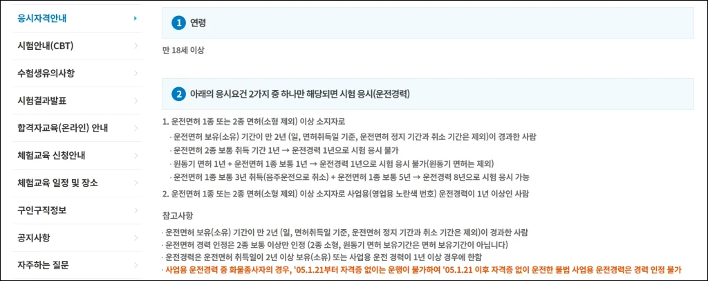 화물운송 자격시험에 응시하려면 아래 4가지 요건을 모두 충족해야 합니다.