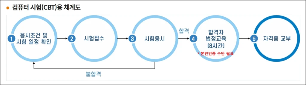 합격자에 한해 8시간의 교육을 이수해야 합니다. 교육을 이수하지 않으면 자격증이 발급되지 않습니다.