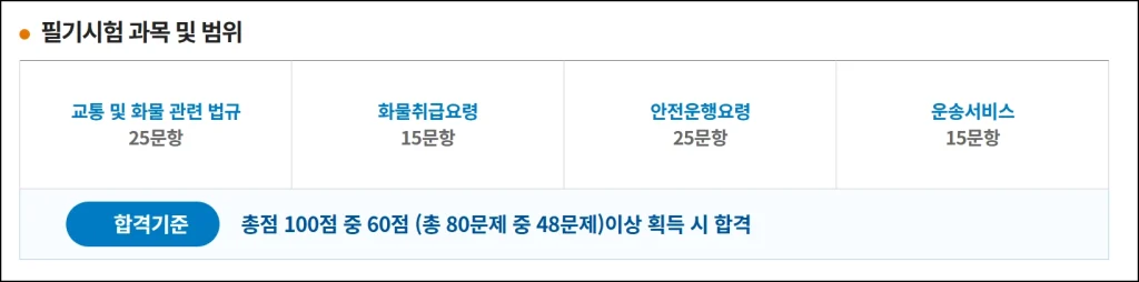 | 합격 기준 | 총점 60% 이상 (80문항 중 48문항 이상) |