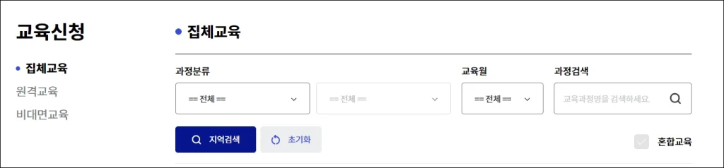 - 집체교육(오프라인): 지정 교육장에서 강사와 함께 실시하는 교수·시범·실습 중심 과정.