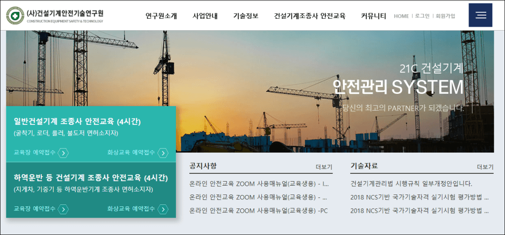 • 공식 인증 기관 선택 (예: 대한건설기계협회 edu.kcea.or.kr)