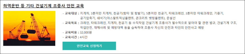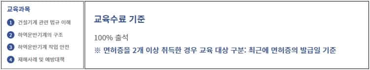 • 오프라인 실습 교육은 별도로 6시간 이수해야 하며, 현장 조작 및 안전체험 위주입니다.