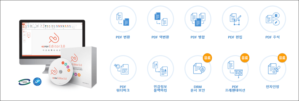 ezPDF Editor 3.0의 대표적인 기능들은 다음과 같습니다.